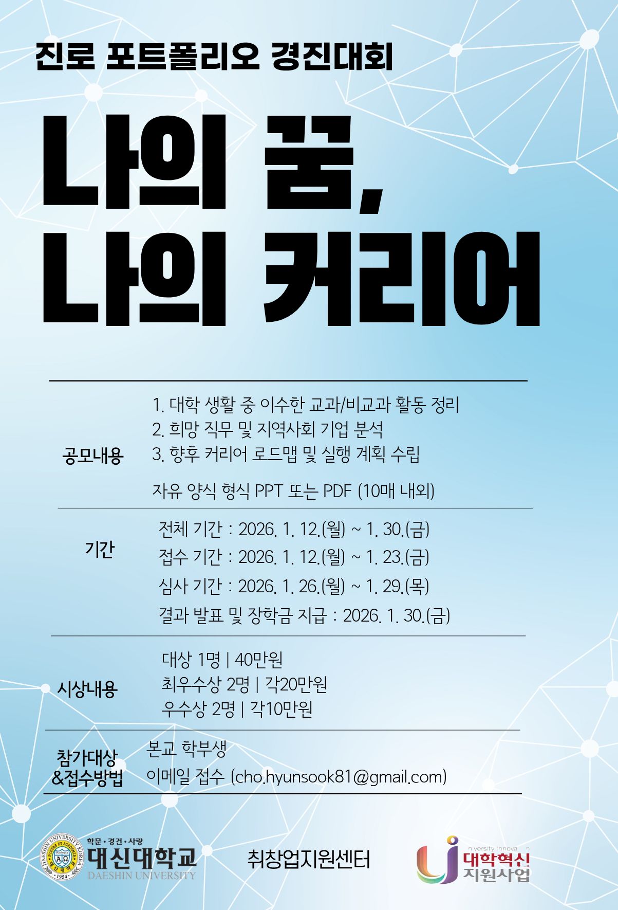 | 취 · 창업지원센터 / 진로 포트폴리오 경진대회 / 나의 꿈, 나의 커리어 | |||||||||