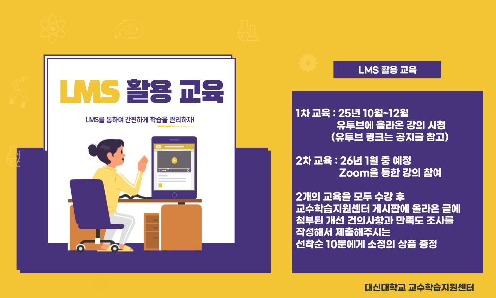 교수학습지원센터에서는 LMS 활용 역량강화를 목적으로 LMS 교육을 실시합니다.