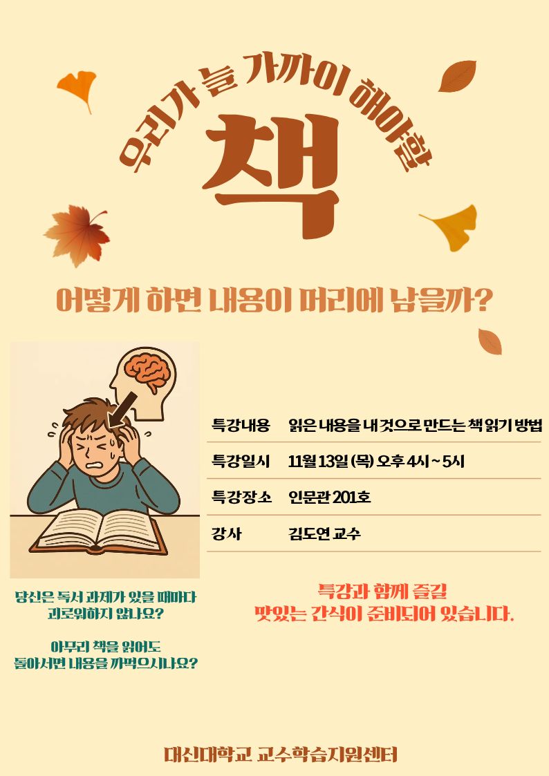 | 2025-2학기 독서법 특강 실시 (완료) | |||||||||