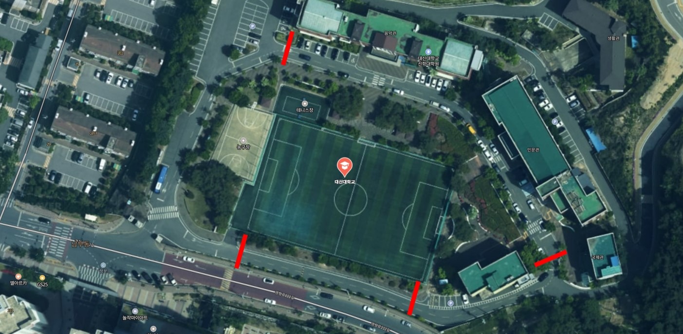 빨간색 안쪽으로는 통행이 불가능합니다!