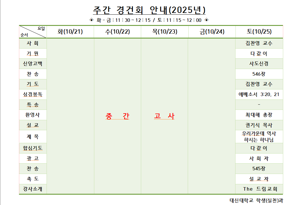 10월 4주차 (10월 21일 - 10월 24일) 경건회 안내