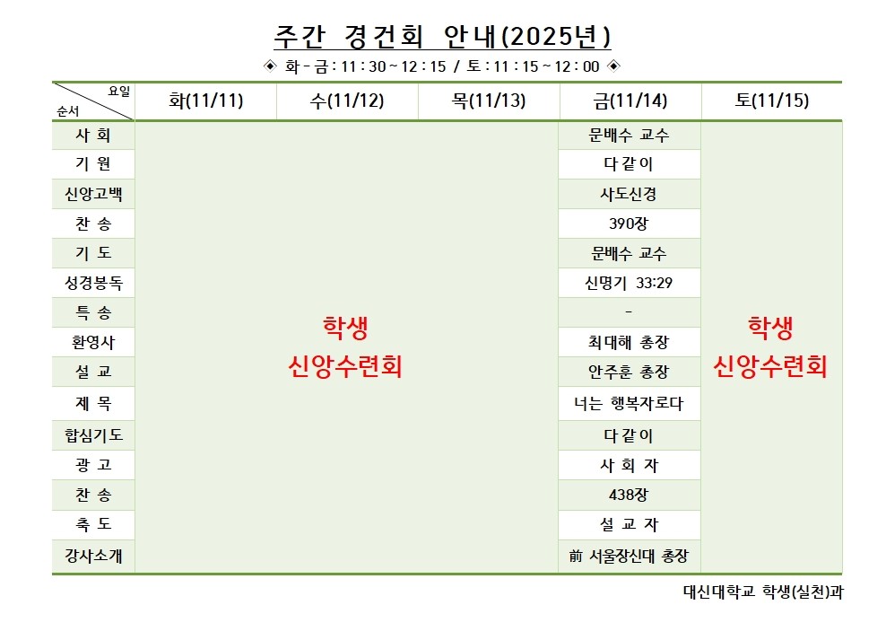 11월 3주차 (11월 11일 - 11월 15일) 경건회 안내