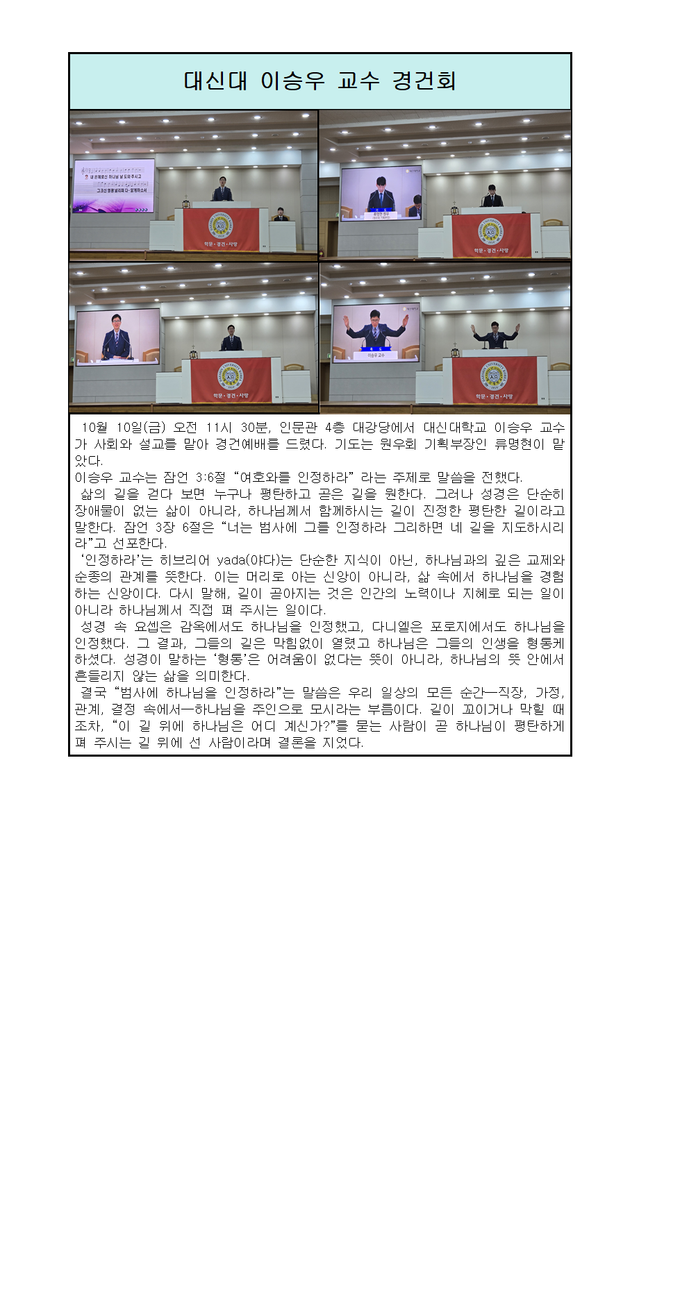 대신대학교 이승우 교수 경건 예배