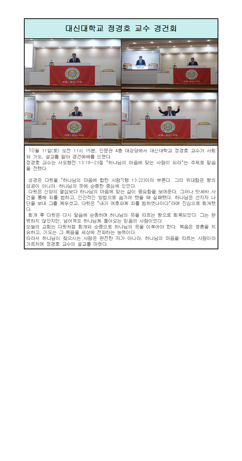 대신대학교 정경호 교수 경건회.hwp