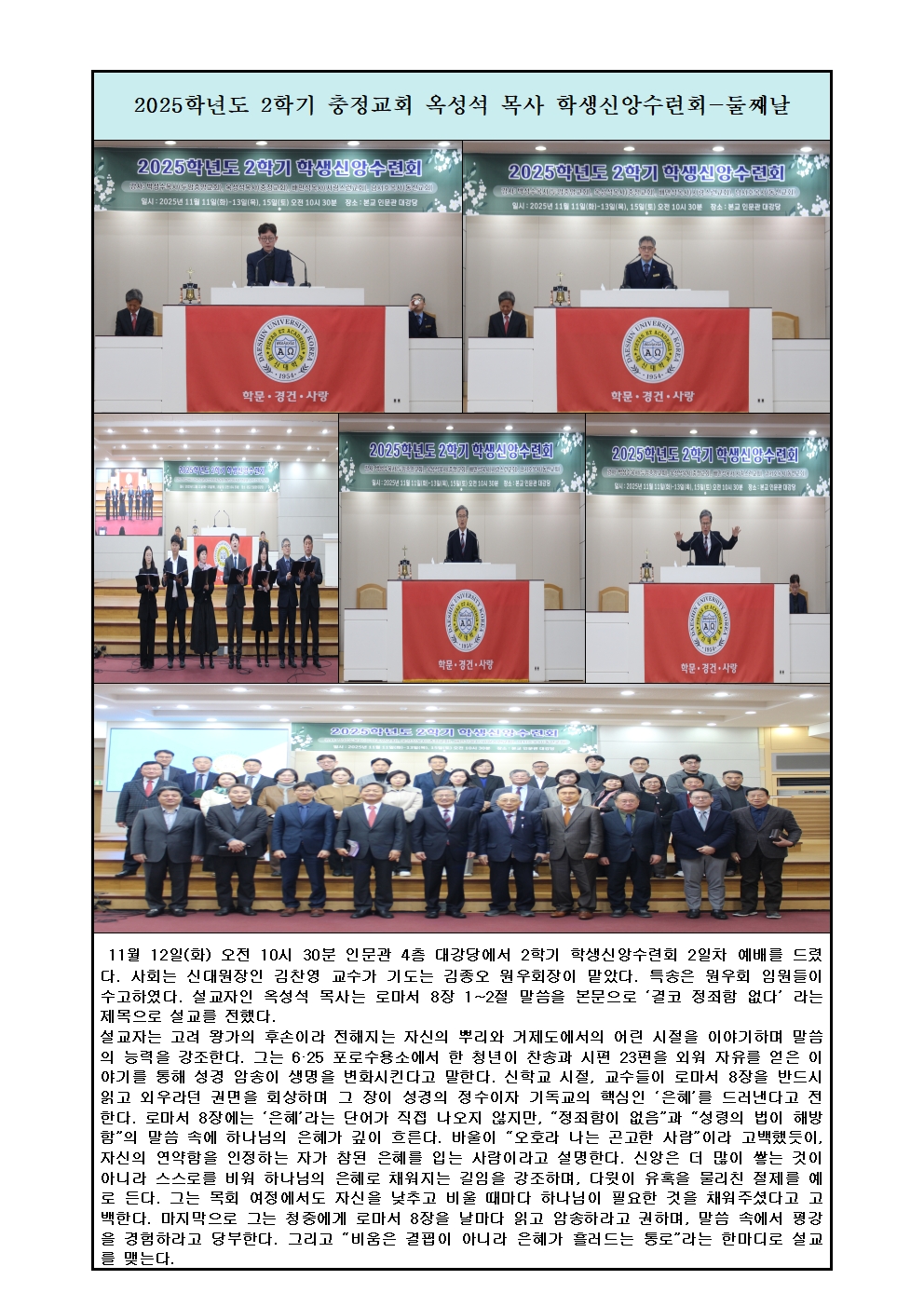 2025학년도 2학기 학생신앙수련회 2일차 충정교회 옥성석 목사 본교방문.hwp