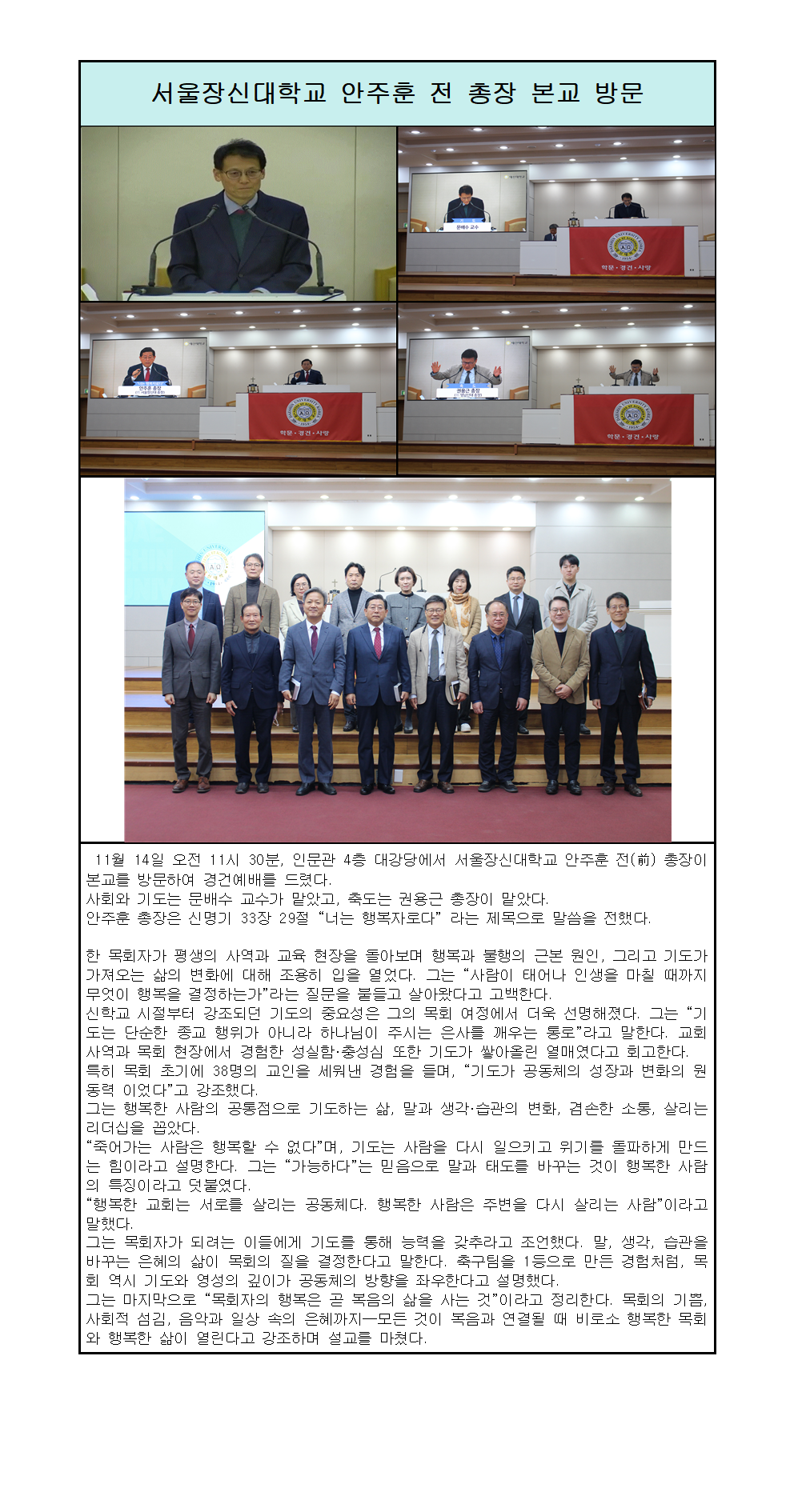 서울장신대학교 안주훈 전 총장 경건회.hwp