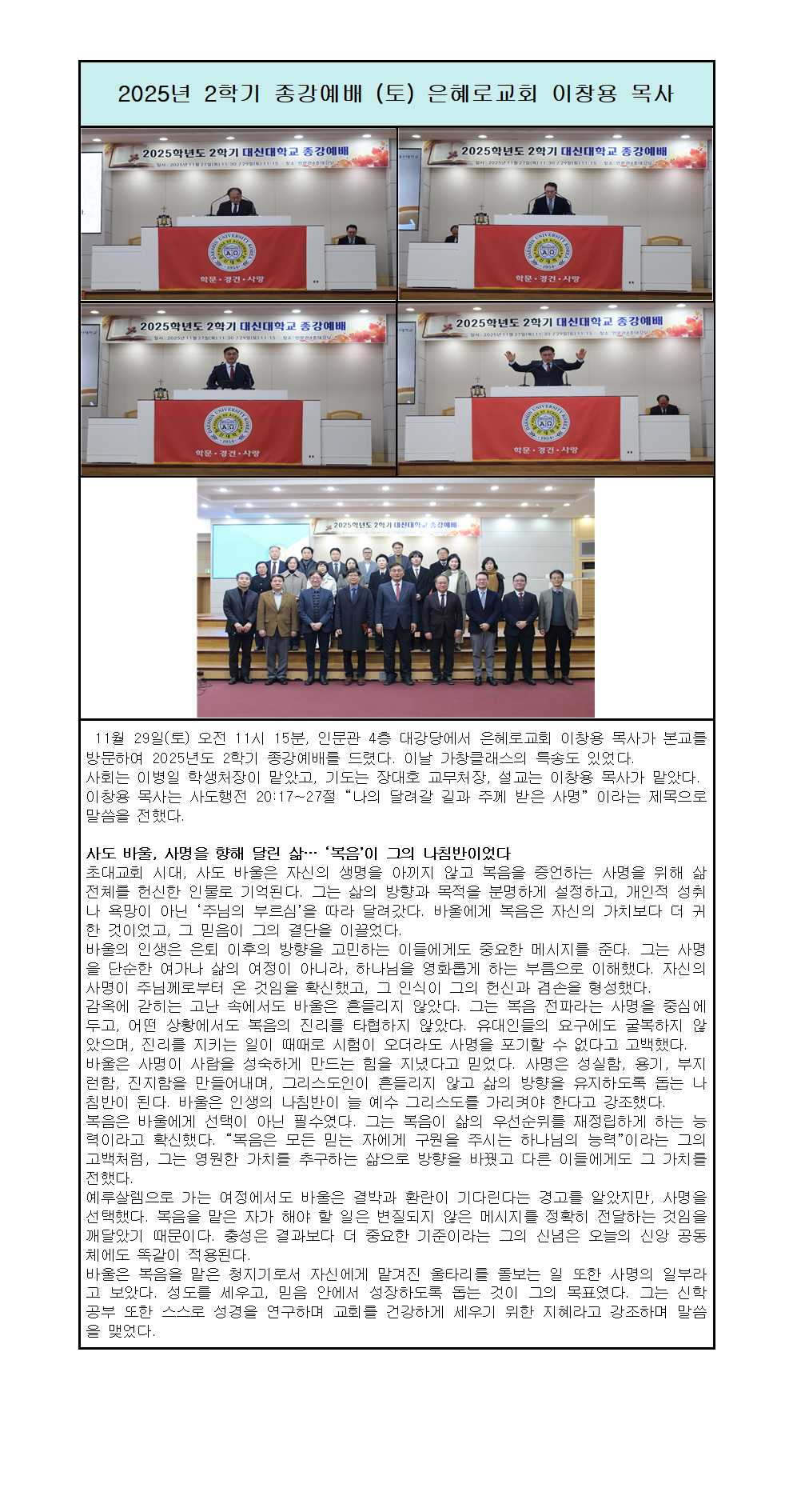 2025년도 2학기 종강예배(토) 은혜로교회 이창용 목사 경건회.hwp