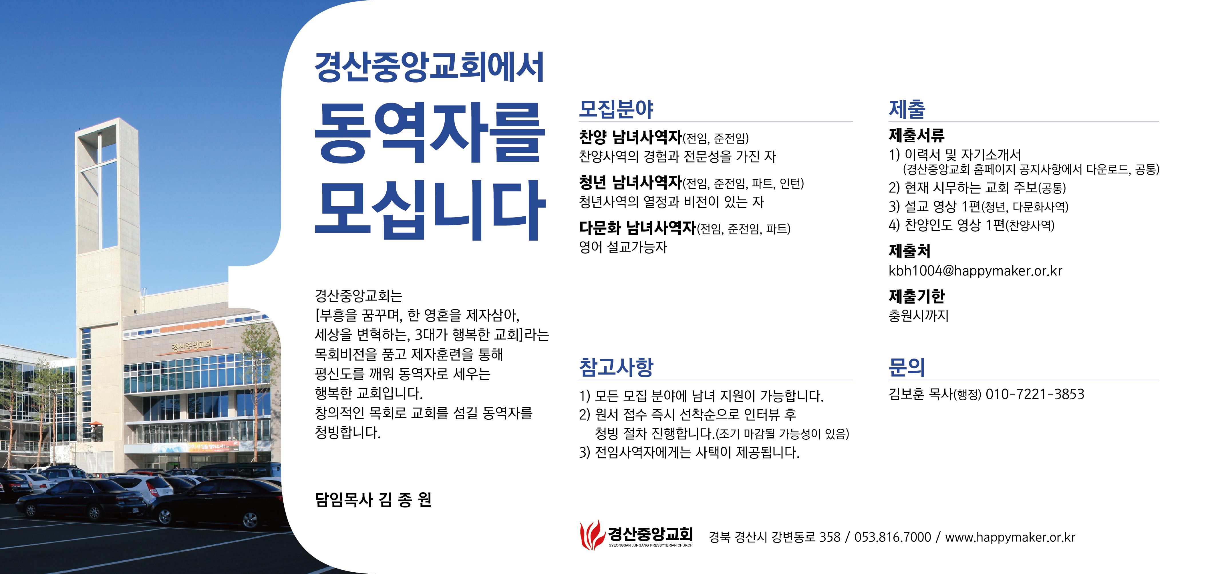 | 경산중앙교회에서 동역자를 모십니다. | |||||||||