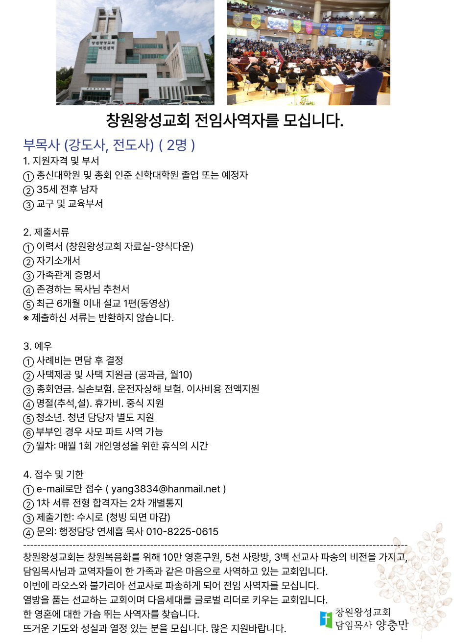 대구 월배제일교회 교역자(전임- 목사 , 강도사)를 모십니다.