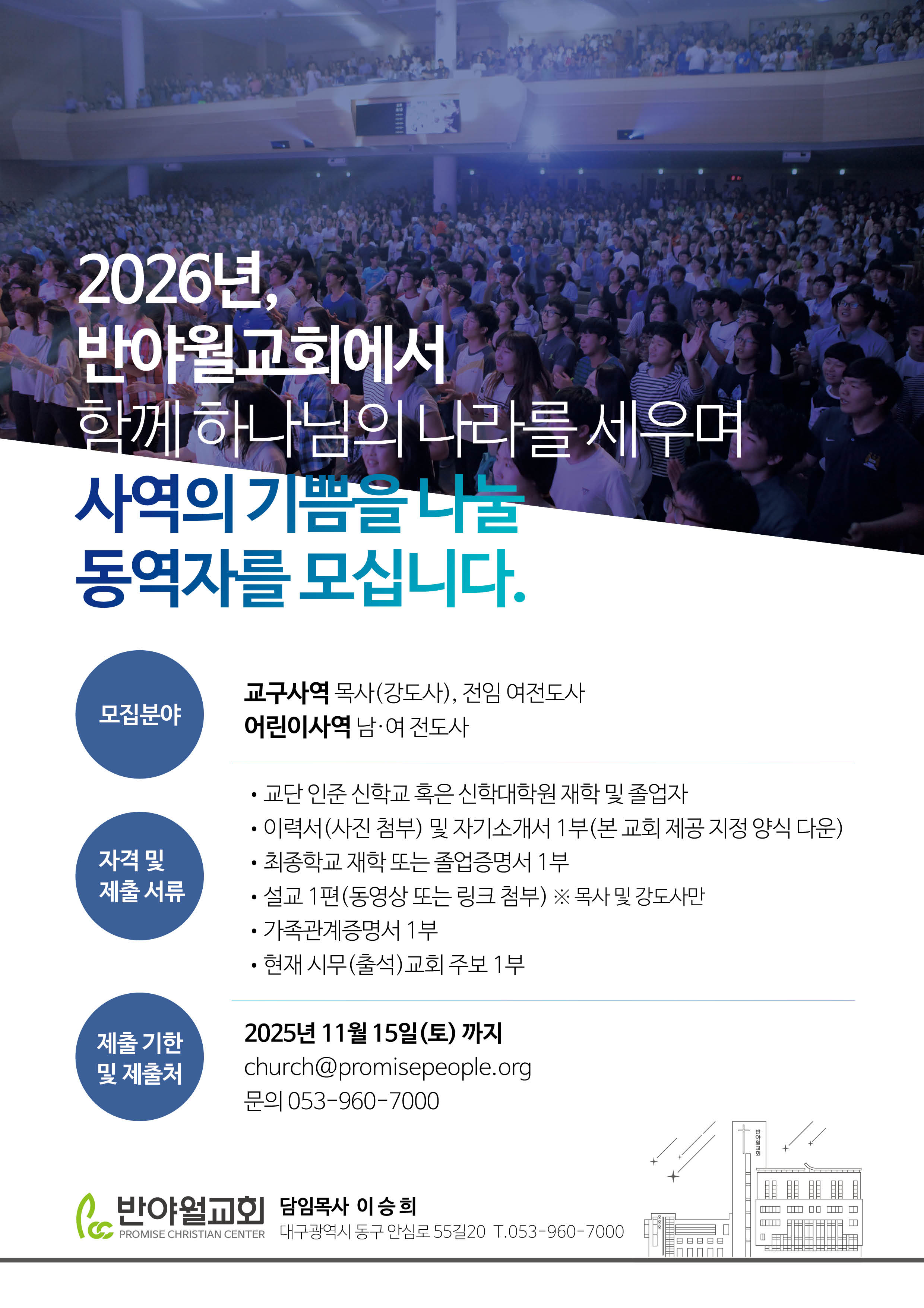 2026년 반야월교회와 함께할 동역자를 모십니다.