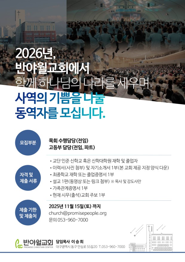2026년 반야월교회와 함께할 동역자를 모십니다.